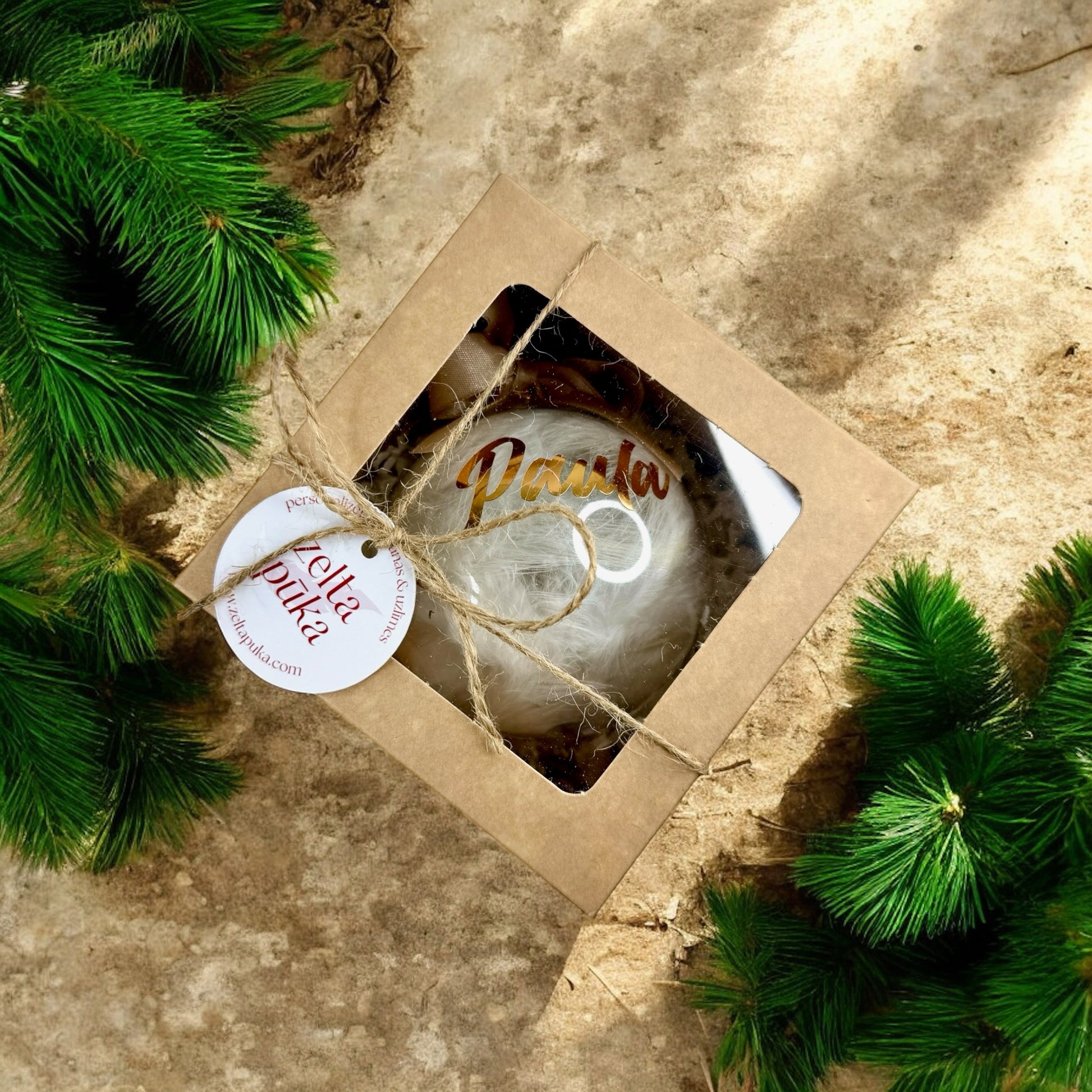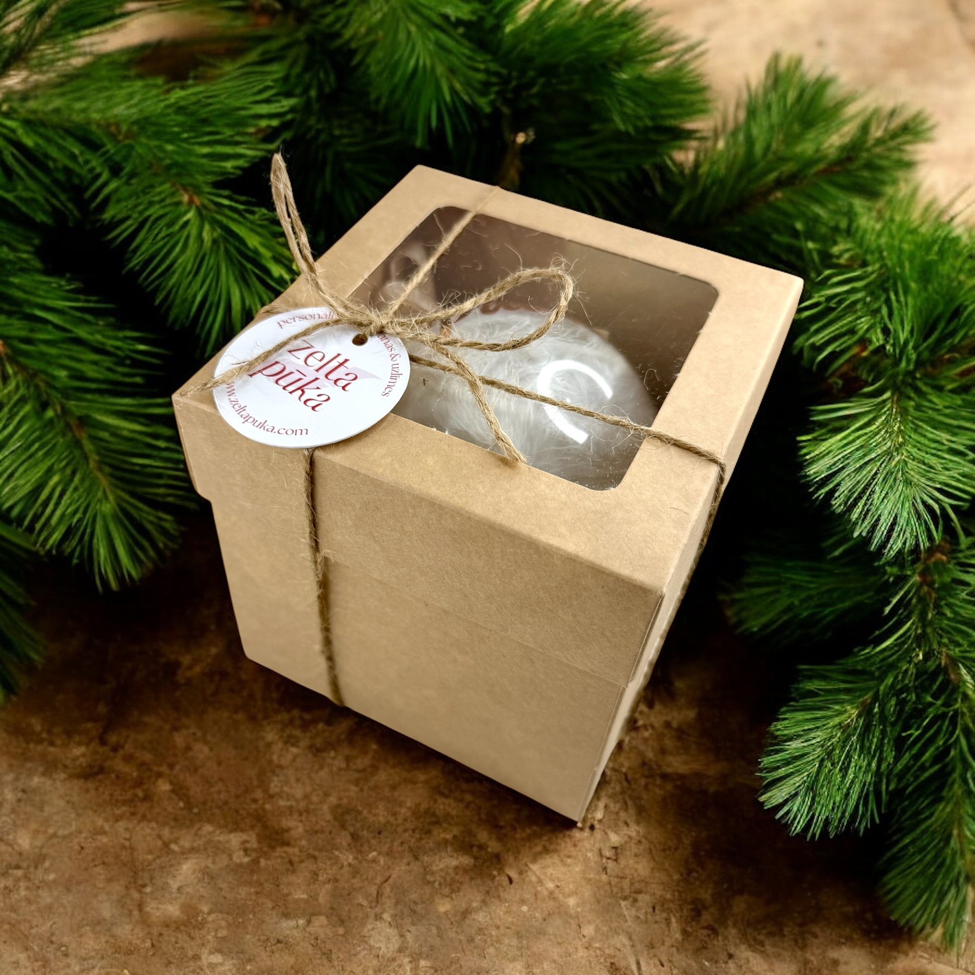 Katra kastīte tiek aizsieta ar džutas aukliņu un papildināta ar Zelta Pūkas birku - vienkārši, bet ar šarmu. Ideāli piemērota tiem, kas novērtē dabiskumu, kvalitāti un detaļas.