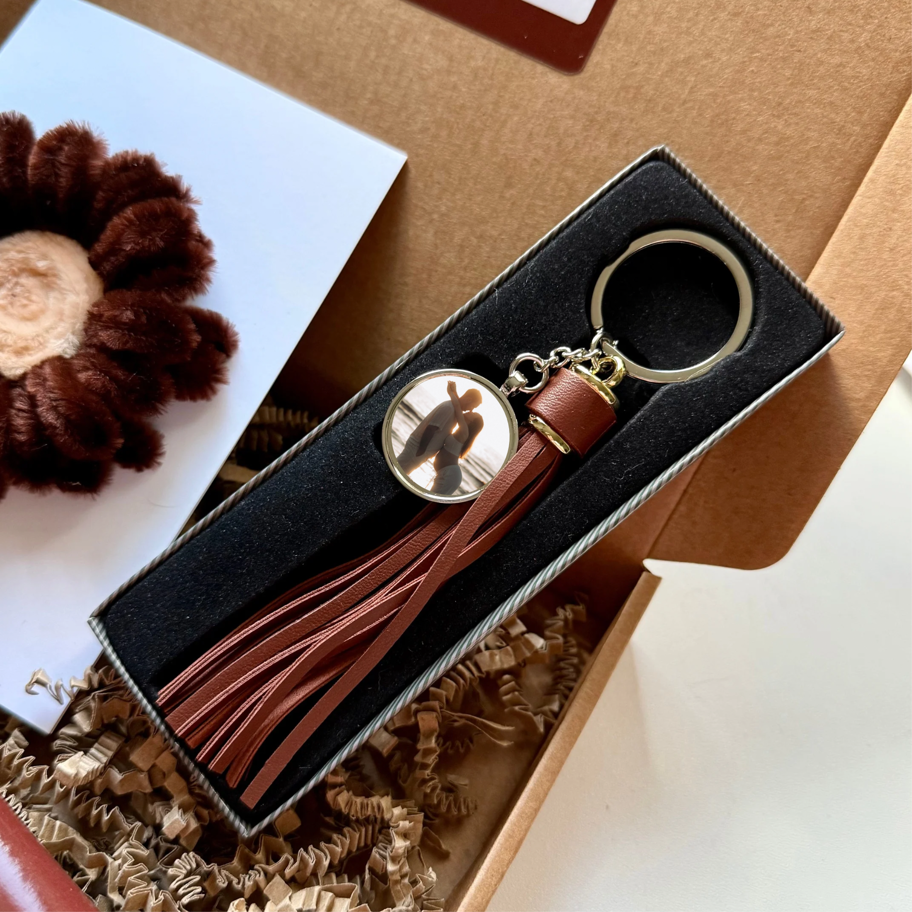 - Brūns atslēgu piekariņš ar fotogrāfiju