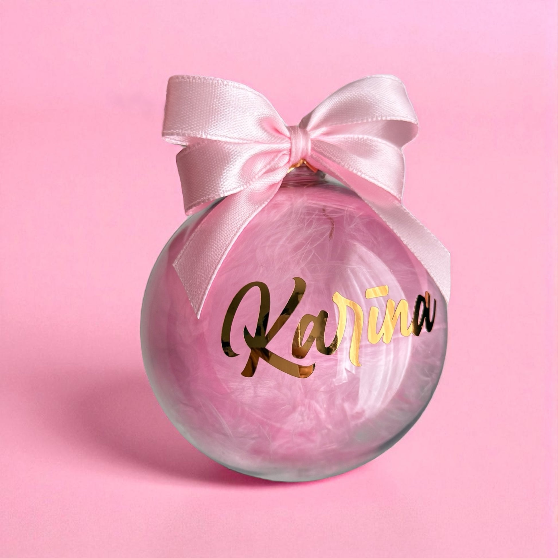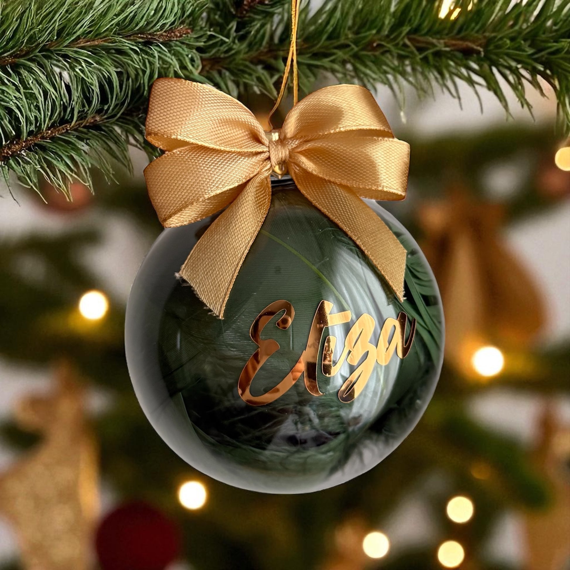 Personalizētas Ziemassvētku eglītes bumbas – izcils veids, kā padarīt svētku dekorācijas īpaši personiskas! Katra bumba tiek izgatavota pēc individuāla pasūtījuma, kurā vari izvēlēties pildījuma krāsu un uzrakstu. Ja nepieciešams, pievieno katram rotājumam dāvanu iepakojumu bezmaksas. Vēlamo vārdu norādi lodziņā "Personalizācija". Maksimālais teksta garums - 1 vārds.